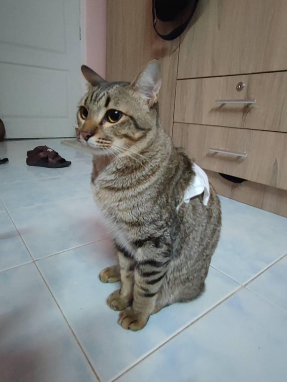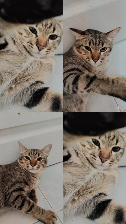 รอยตำหนิ: หางขอด ขาค่อนข้างสั้น ตัวตัวอ้วมๆป้อมๆ ขนฟูนิดหน่อยน้องแต่แมวไทยแต่มีเชื้อผสม ไม่ได้สวมใส่ปอกคอ