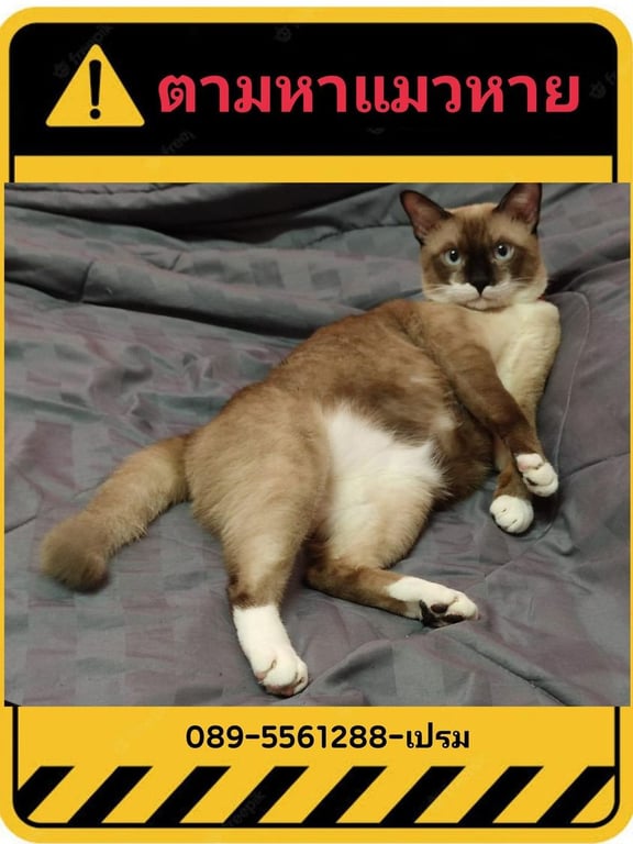 รอยตำหนิ: น้ำตาล เท้าสีขาวประกาศตามหาน้องแมวค่ะ 🥲🥲🥲 ชื่อ สามชั้น พันธุ์วิเชียรมาศ อายุ 3 ปี เพศผู้ ทำหมันแล้ว ไม่ม่ปลอกคอ หายออกจากบ้าน ประมาณวันอังคาร พิกัดบ้านพักม.พัน15 จังหวัดน่าน ใครพบเห็นรบกวนติดต่อ ☎ 089-556-1288 หรือทักแชทได้เลยครับ