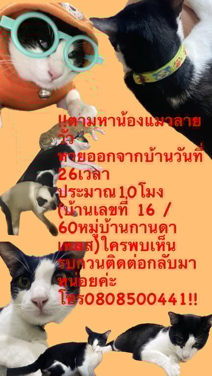 สี: เเมวลายวัว ท้องขาวตัวสีดำขาขาวบางส่วน