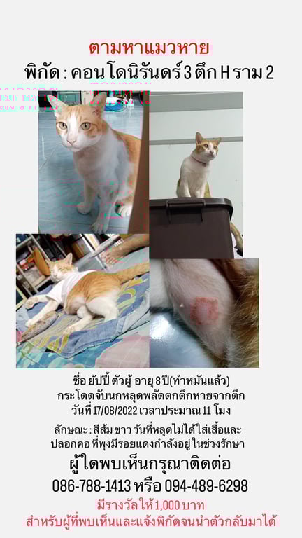 มีรอยแผลวงสีแดงที่พุง สองขาหน้าสีขาว