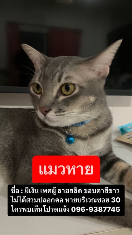 รอยตำหนิ: ไม่ได้สวมปลอกคอขี้อ้อน ไม่ดุ อาจกลัวคนแปลกหน้าเพราะปกติอยู่แต่ในบ้าน