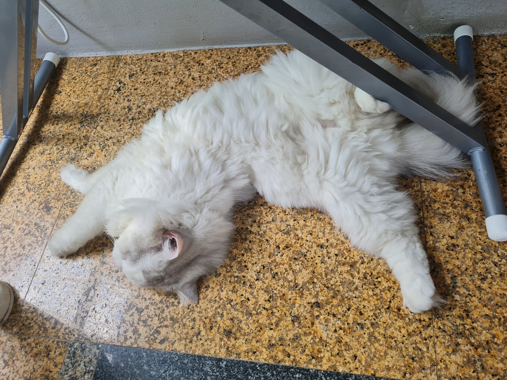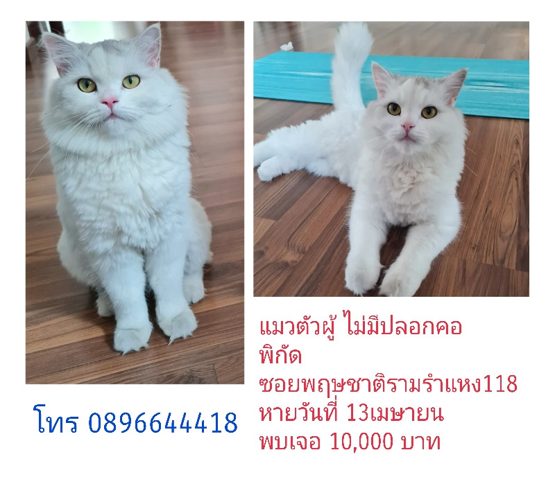 รอยตำหนิ: สีขาวทั้งตัว มีจุดดำๆที่หัวขี้อ้อนกับคนรู้จ ไม่ได้ใส่ปลอกคอ ไม่ร้อง