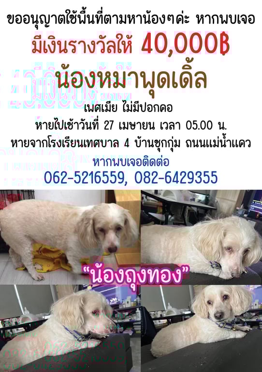 รอยตำหนิ: ไถขนตัสสั้น มีขนยาวที่ปลายหาง1กำมือ , และขนที่หูยาวค่ะขี้กลัวค่ะ แต่หิวน่าจะเข้าหาคน น้องนิสัยดีไม่ดุค่ะ