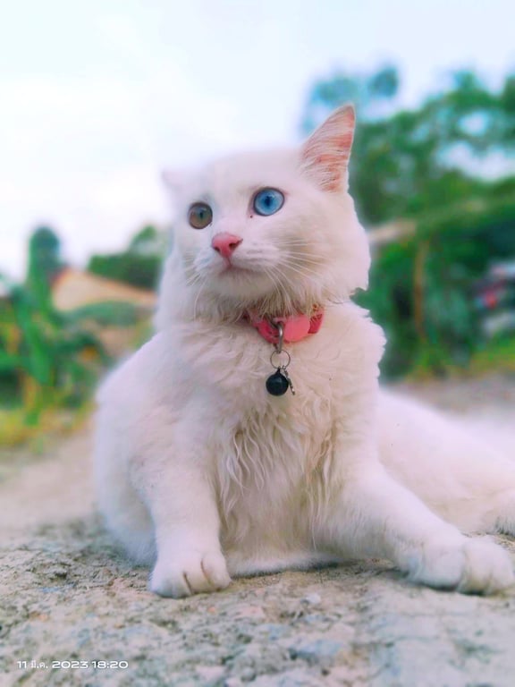 สี: ขาวทั้งตัวตาสองสี ข้างหนึงสีขาว ข้างหนึ่งสีฟ้า