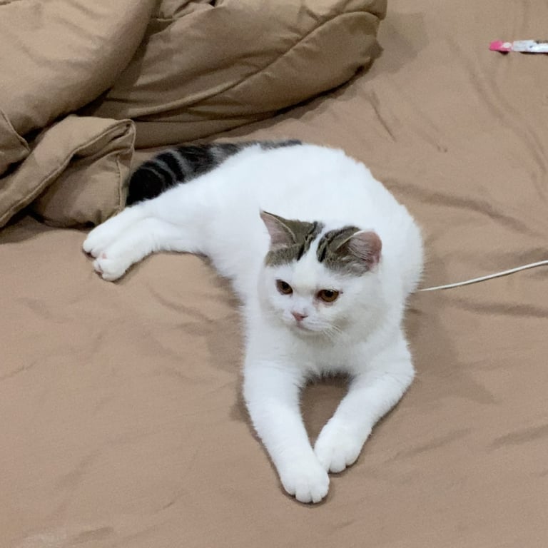 รอยตำหนิ: มีลายที่หูและหางสีดำ ตาสีเหลืองขี้ตกใจ