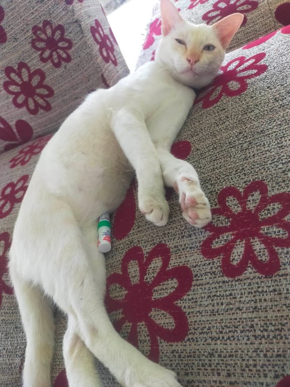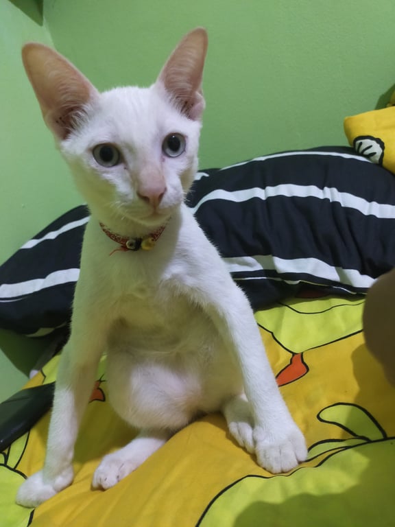 รอยตำหนิ: มีลายส้มอ่อนๆที่หางน้ำหนักประมาณ6กิโลตอนที่หายไปใส่ปลอกคอสีเขียว