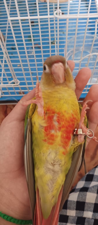 สี: ปีกเขียว หางแดง ท้องส้มเหลือง