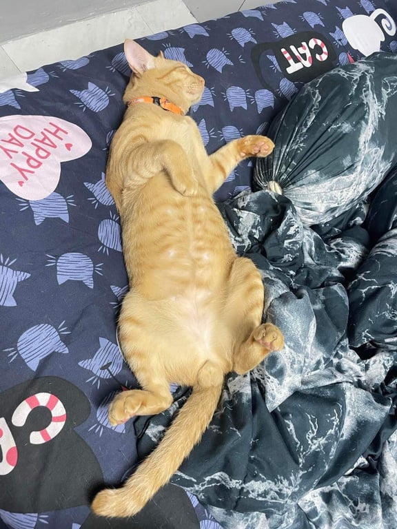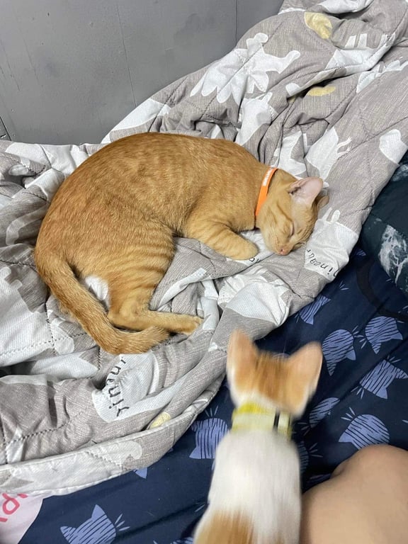รอยตำหนิ: หางหักเป็นตัวL มีปลอกคอ2เส้น เส้นนึงสีเขียวลายผลไม้ เส้นนึงสีเหลืองสะท้อนแสง