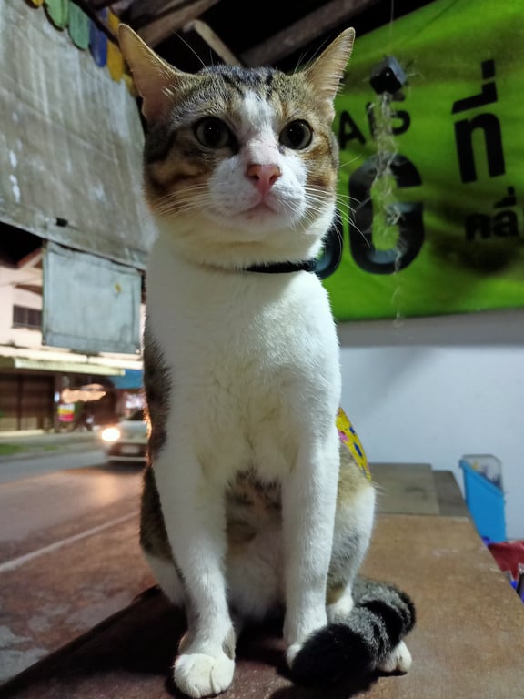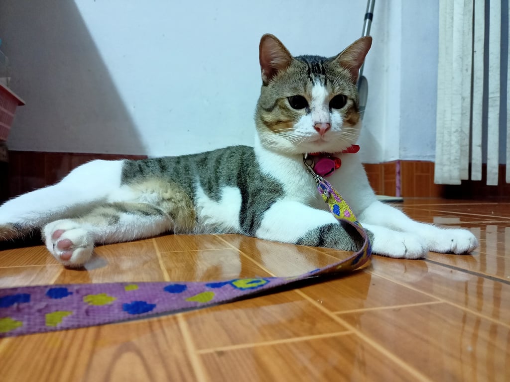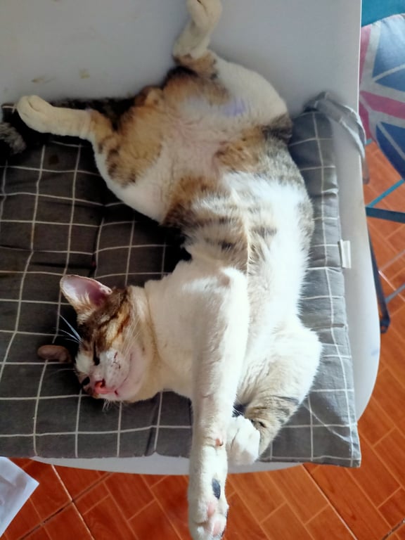 รอยตำหนิ: มีแผลที่ใต้คาง ใส่ปลอกคอเชือกถักไหมพรมสีชมพูจุดสังเกตคือมีแผลที่ใต้คาง น้องใส่ปลอกคอเชือกสีชมพู