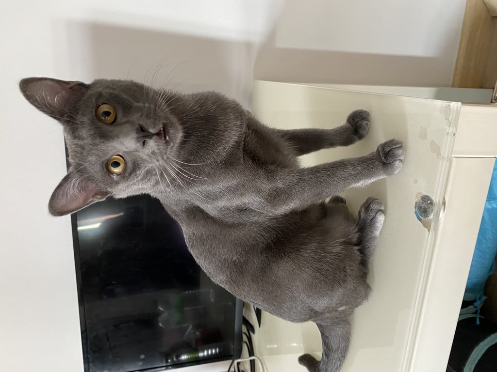 รอยตำหนิ: หางยาว ขาหลังขวามีแผลเป็นน้องกลัวคน ไม่คุ้นคน ขี้ตกใจ