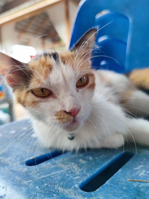 รอยตำหนิ: ปลายหางกวักเป็นแมวพันธุ์สามสีหรือแมวคาลิโก