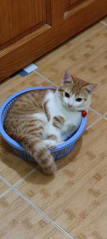 รอยตำหนิ: ปากมีรอยแผลแมวส้มหน้าขาว หนักเกือบ7ก.ก. ไม่มีปลอกคอ