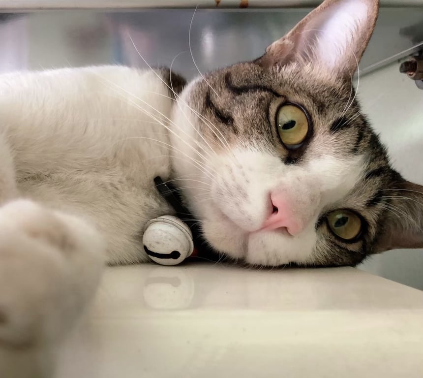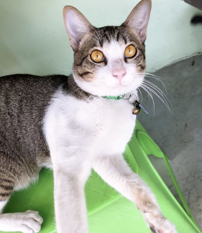 รอยตำหนิ: ตัวใหญ่+พุงห้อย+หลังอาน เกิน 5 โลปลอกคอสีเขียวเข้ม+ป้ายชื่อหน้าแมวสีฟ้าใส เขียนว่า ARTY ขี้กลัว ขี้ตกใจ ขี้ระแวง กลัวคน กลัวเสียงดัง ไม่สู้แมวด้วยกัน
