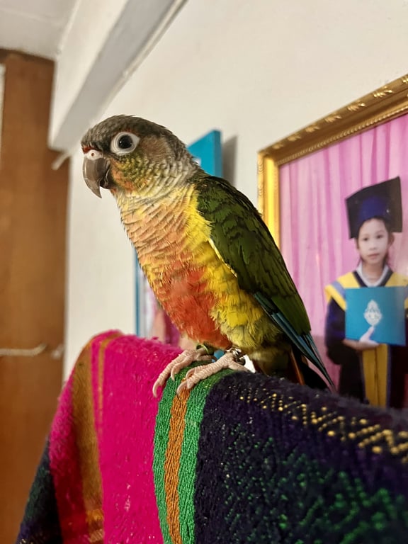 รอยตำหนิ: จะงอยปาก มีลอก เห็นได้ชัด มีห่วงเงินแบบเชือกจูงที่ข้างซ้าย มีห่วงสีเขียวข้างขวา สลักชื่อและเบอร์โทรน้องเชื่องติดคน สามารถเรียกชื่อ เรียกพ่อคร๊าบ แม่คร๊าบได้ น้องชอบเกาหัวตัวเอง เป็นจุดสังเกตุ