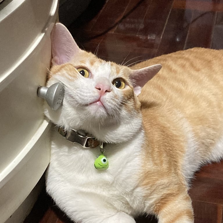 รอยตำหนิ: หางกวัก ยาวใจดี เรียบร้อย ขี้อ้อน ขี้กลัวโดยเฉพาะเด็ก ชอบเสียงถุงขนมแกบๆ
