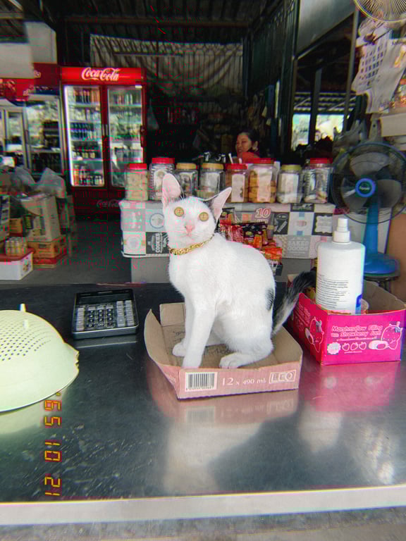 รอยตำหนิ: มองจากทางด้านหลังหัวน้องจะมีจุดดำ3จุดเหมือนลูกบอล หางหัก หางสีดำปลายหางสีขาวค่ะน้องติดคน