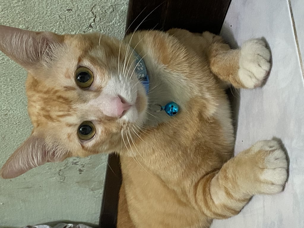 รอยตำหนิ: เท้าสี่ข้างสีขาว ช่วงจมูก ปากลงไปถึงคอเป็นสีขาว น้ำหนัก 4.5 โลน้องเป็นแมวที่รู้เรื่อง เวลาหลุดออกไป น้องจะมาเรียกหน้าบ้านให้เปิดประตูให้ หรือบางทีถ้าเปิดประตูไว้ก็จะเดินเข้าบ้านเอง น้องชอบออกข้างนอกมากกว่าอยู่ในบ้าน จะมีปล่อยไปเดินเล่นบ้าง(อยู่ในความดูแลของผู้ปกครอง) เลือกกิน(อาหารแมว) เวลาคนกินอะไรจะชอบมาขอกินด้วยประจำ