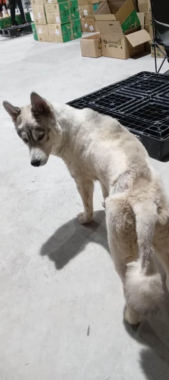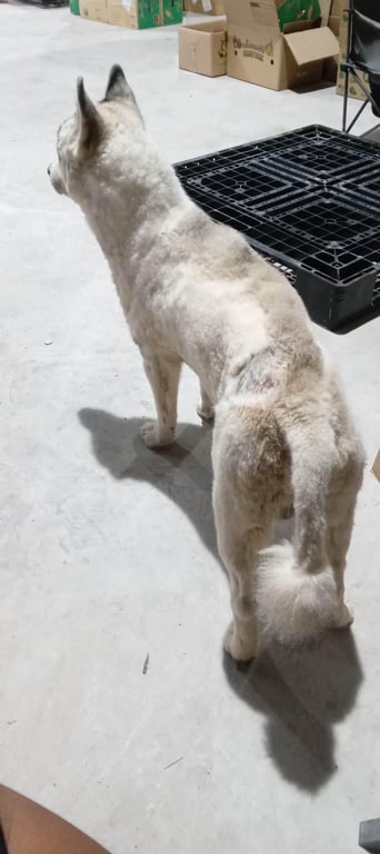 รอยตำหนิ: หางเป็นพุ่ม มีแผลแถวสโพกด้านซ้าย ขอบตาดำๆ พึ่งตัดขนให้สั่นๆเชื่องๆ ไม่ค่อยเห่าใคร เดินช้าๆ