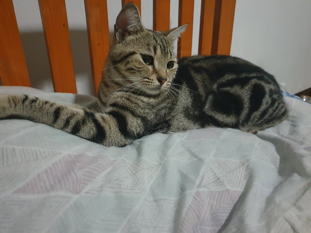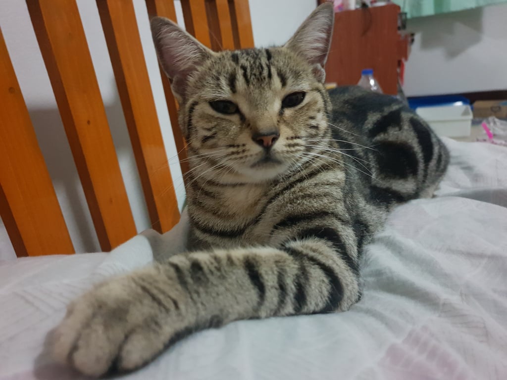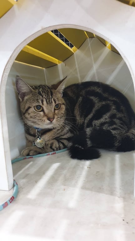 รอยตำหนิ: สีน้ำตาลลาย เขี้ยวหน้าหักเชื่อง ไม่กลัวคนแปลกหน้า