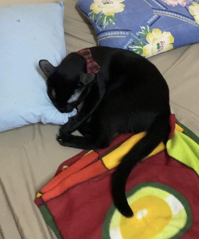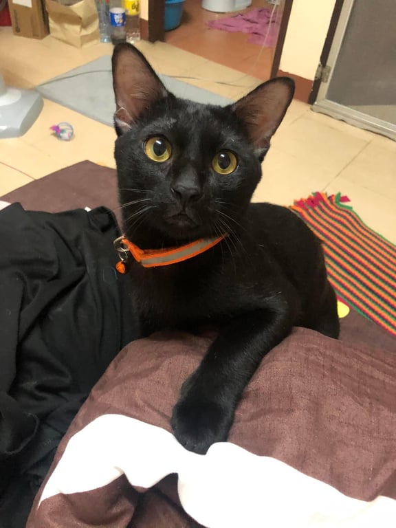 รอยตำหนิ: หลังหูซ้าย มีแผล(ชอบเกา) , เล็บเท้า มี 1 นิ้ว ที่เล็บพึ่งขึ้น เพราะเล็บหัก- ตอนที่น้องหลุดออกไป ใส่ปลอกคอหูกระต่ายลายสก๊อตสีแดง - เป็นมิตร นิสัยขี้อ้อน ติดเจ้าของมาก
