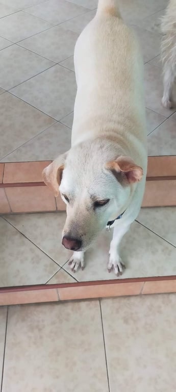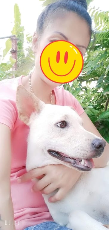 รอยตำหนิ: หูข้างช้ายตั้งหูข้างขาวตกหูสีส้มอ่อนขาหน้าโก่งนิดๆน้องเป็นหมาขี้กลัวเจอคนแปลกหน้าก็จะวิ่งหนีน้องกลัวหมดทุกอย่างเสียงอะไรดังๆน้องก็จะกลัวมาก..