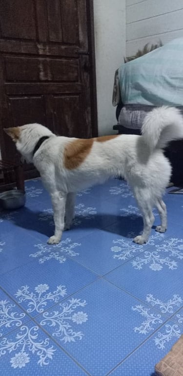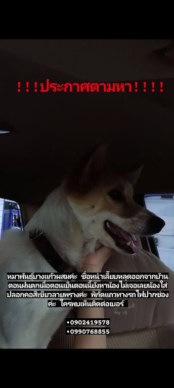 รอยตำหนิ: ใส่ปลอกคอสีเขียวลายพรางน้องตกใจฟ้าร้องและวิ่งหนีออกจากบ้าน น้องไม่ดุ ขี้กลัว