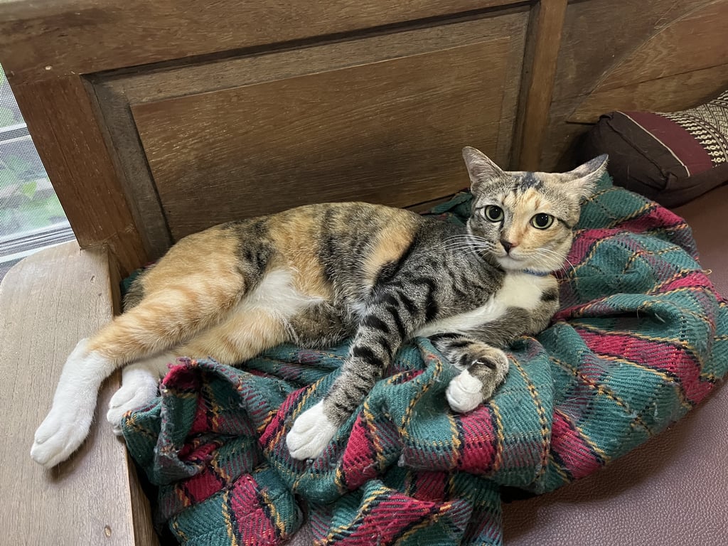 รอยตำหนิ: หน้าแบ่งครึ่งเทา-ส้ม หางหักใส่สร้อยกะพรวนสีแดง ตัวเล็กๆ เฟรนลี่ พูดเก่ง