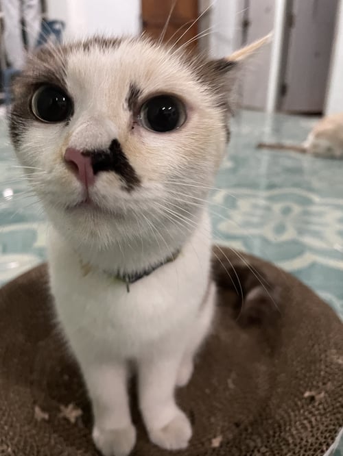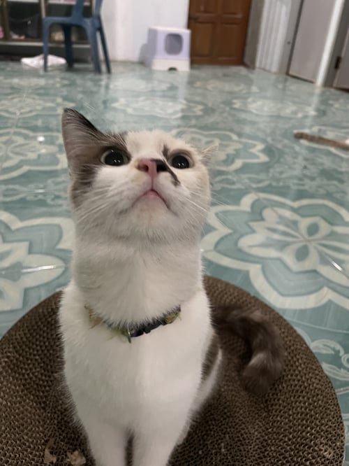รอยตำหนิ: มีเเต้มตรงจมูก/มีปอกคอสีม่วงเรียกชื่อจูลี่หันเรียนชื่อ จูลี่หัน เข้าหาคนขี้อ้อน