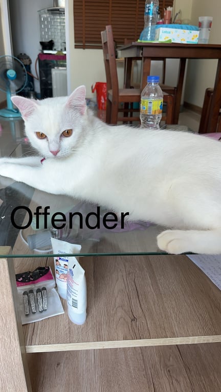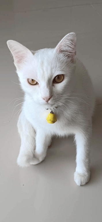 รอยตำหนิ: กระพรวนสีเหลืองตัวนุ่มๆ ขนปุยๆสีขาวล้วน ตาสีเหลือง หน้าดุนิดหน่อย