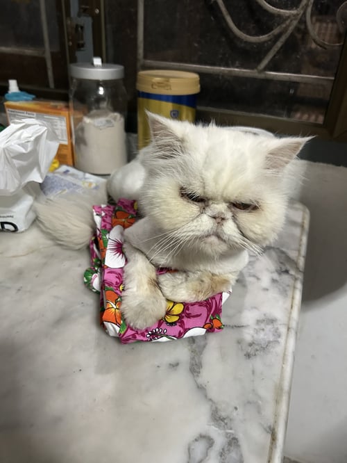 รอยตำหนิ: น้ำหนัก 2-3 โลอายุ 14 ปี เป็นแมวไม่ค่อยร้อง ผอมๆ เนื่องจากแก่แล้ว อาจดุเมื่อเจอคนแปลกหน้า