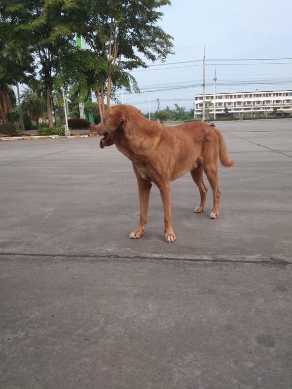 รอยตำหนิ: คอมีด่างสีขาว ตัวสูง ไม่ดู จมูกสีน้ำตาล ตาสีน้ำตาลไม่เห่า ไม่กัด เดินเก้งก้าง