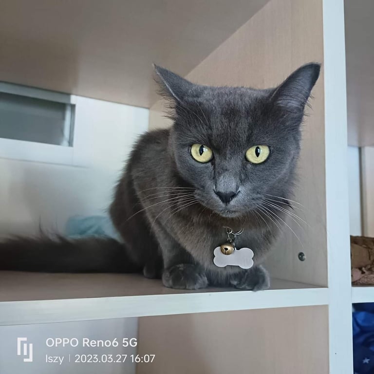 รอยตำหนิ: สีเทาทั้งตัวขี้กลัวคนเเปลกหน้า หวงตัว จับยาก