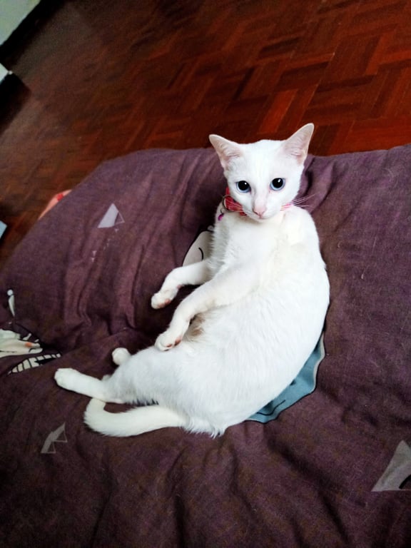 รอยตำหนิ: น้ำหนักประมาณ3-4โลเป็นแมวเฟรนลี่แต่ก็แอบขี้กลัวชอบร้องอ้อนเวลาเจอคน