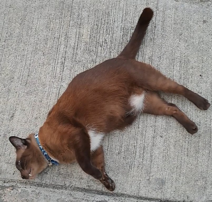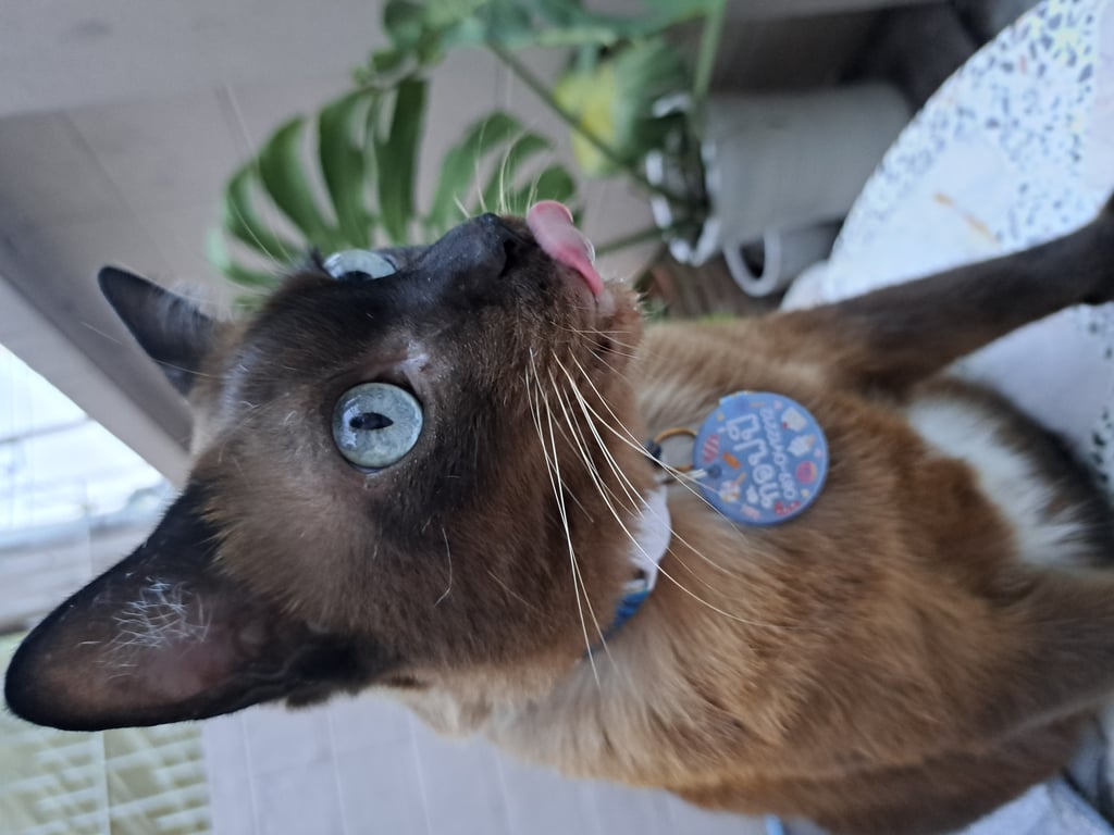 รอยตำหนิ: แต้มขาวใต้ท้อง2จุด พุงย้อยตาสีฟ้าอมเหลือง ก้นด้านขวามีรอยไถขน ชอบแลบลิ้น แยกเขี้ยว1ข้าง เชื่องกับคน