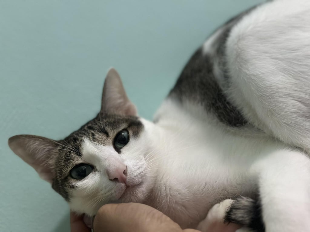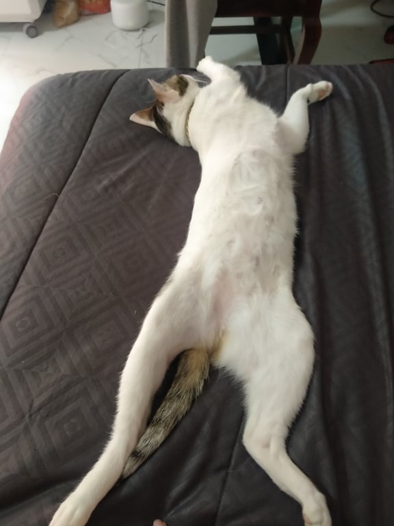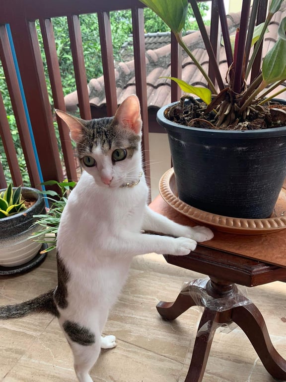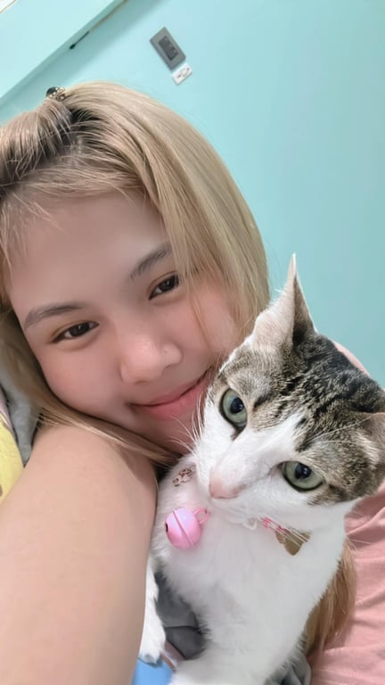 รอยตำหนิ: หางตรงยาว ผอมบางกลัวคนแปลกหน้า กลัวเสียงดัง ขี้ตกใจง่าย พึ่งย้ายมาบ้านใหม่ไม่คุ้นที่ มีปลอกคอเป็นผ้าถักสีชมพู มีจี้รูปแมวสีชมพูตรงปอกคอ