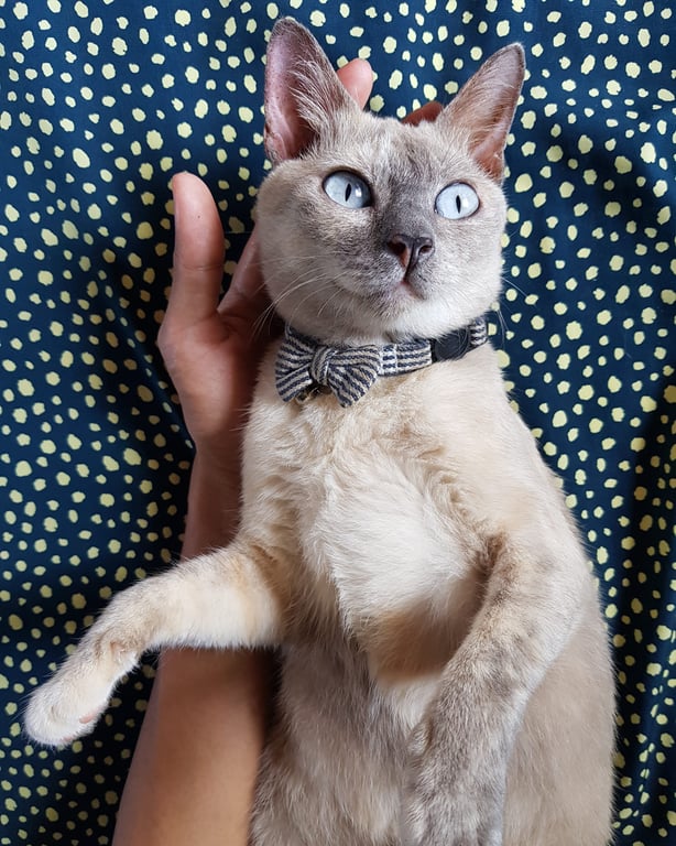รอยตำหนิ: ตัวเล็ก ตาสีฟ้า หนัก 4 กิโลนิสัยขี้กลัว ตกใจง่าย ไม่ชอบให้คนแปลกหน้าจับ