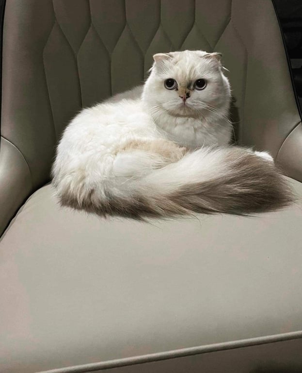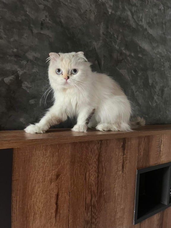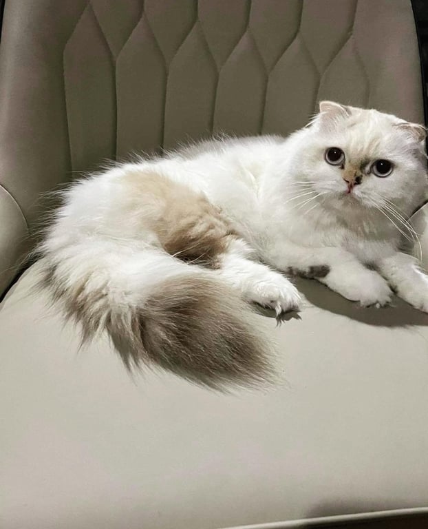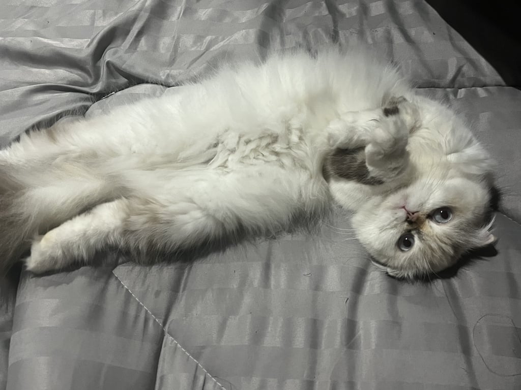 รอยตำหนิ: ปานตรงจมูก ตาฟ้าใส่ปลอกคอสีแดง ขี้กลัว