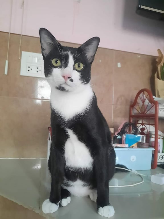 รอยตำหนิ: มีตำหนิเหมือนใฝอยู่ข้างจมูก เท้าหน้าทั้ง2ข้างเป็นขนสีขาวเหมือนใส่ถุงเท้า นน.ประมาณ4.5-5กิโลนิสัยขี้กลัวขี้ตกใจ