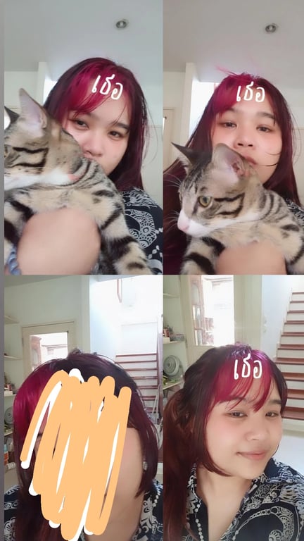 รอยตำหนิ: ปากขาว จมูกชมพู เท้าขาว หางยาว ปลายหักงอ ตาสีเหลือง