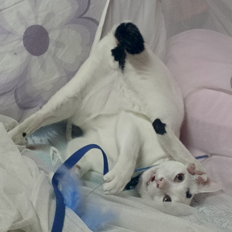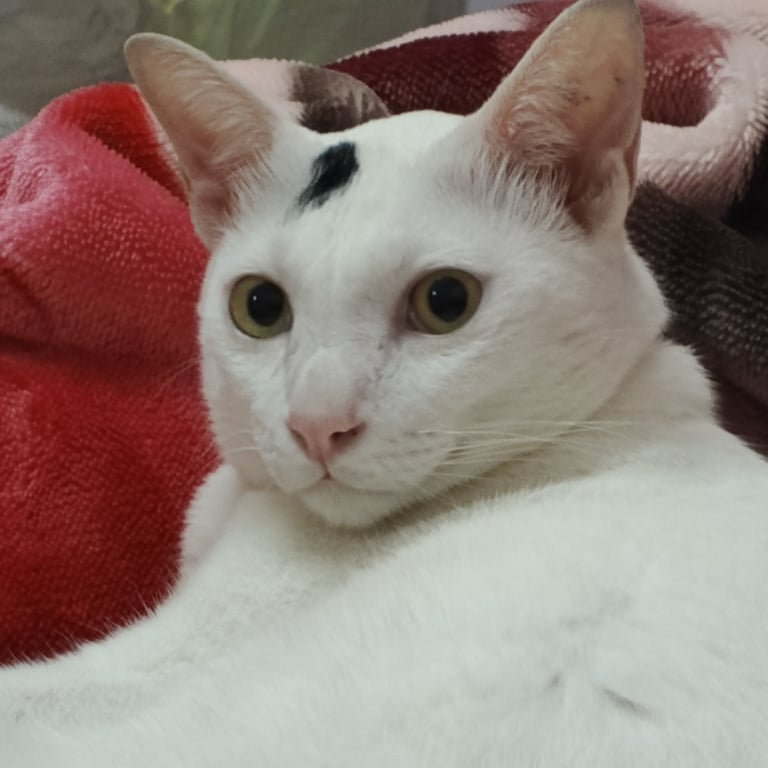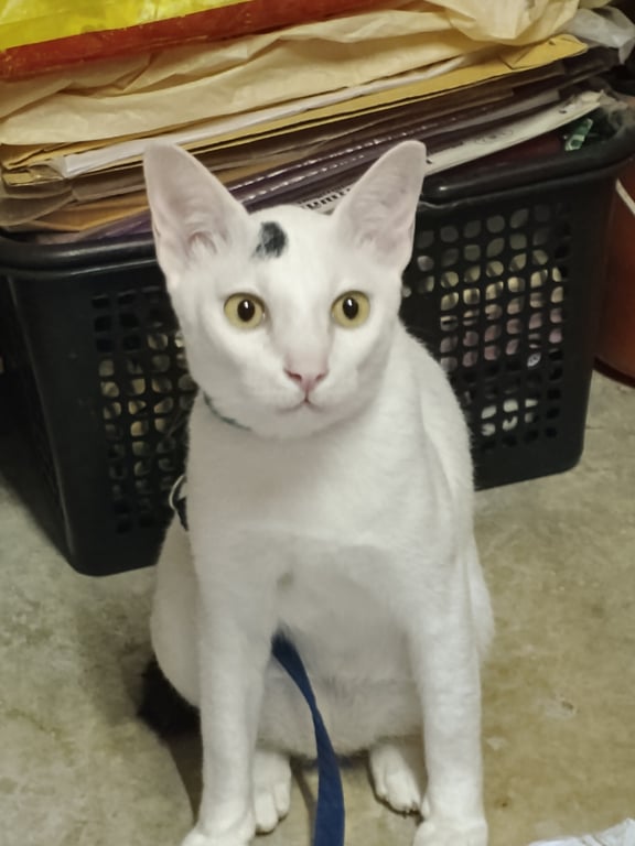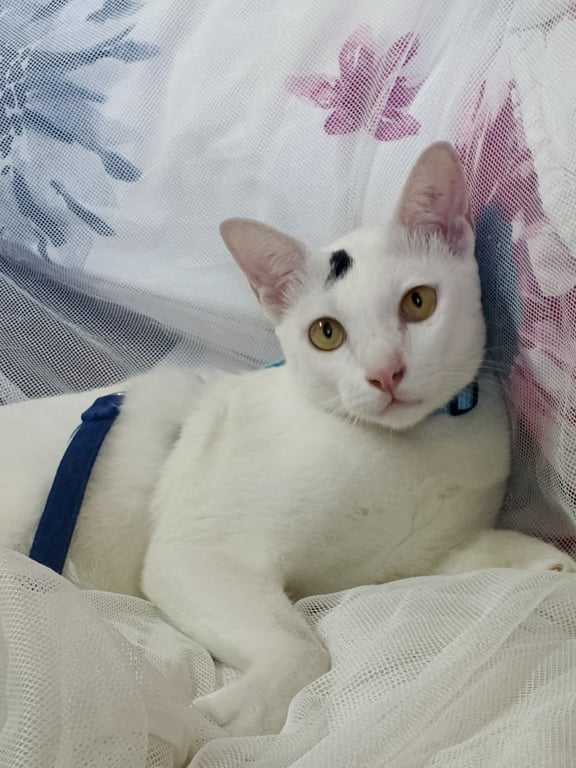 รอยตำหนิ: ตาสีเหลือง หางกวัก มีแต้มดำตรงหน้าผาก และหางน้องค่อนข้างไม่กลัวคน แต่จะไม่ชอบเสียงดัง ซนมากๆ