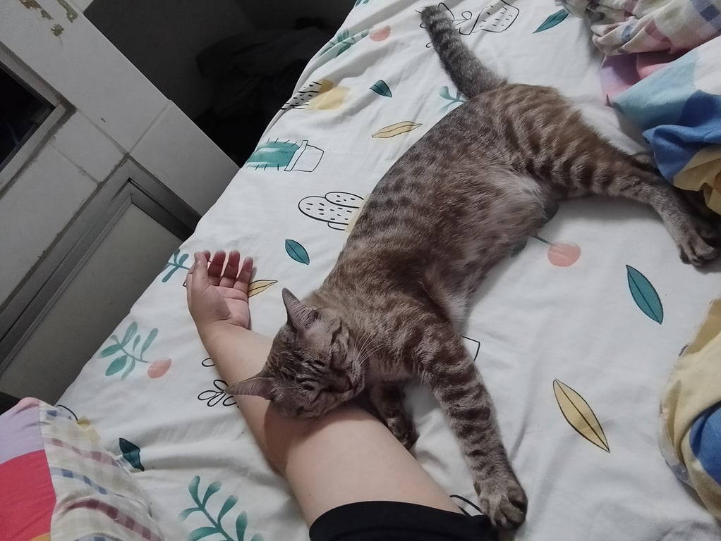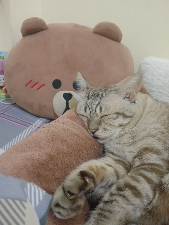 รอยตำหนิ: แมวอ้วน ลายสลิด หางยาวนิสัยขี้อ้อน ไม่ค่อยกลัวอะไร ติดคน