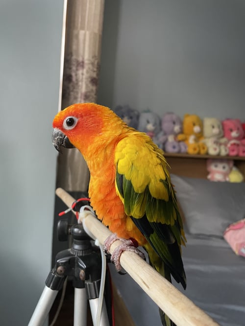 รอยตำหนิ: ห่วงขาสีแดง มีเลข11 อีกข้างเป็นห่วงคล้องสายจูง (ปีกที่ขลิปแซมออกมามีสีครีมเหลืองอ่อนๆปลายปีก)11 เดือน น้องจะกลัวมือเพราะพาไปขลิปกลับมาเลยกลัวมือไปเลย แต่น้องจะคิดไหล่ชอบซุกผมมาก เวลาจะเรียกหรืออะไรค้องเอาฮ้วยมั๊วล่อไปที่ปากช้าๆ เล็บน้องจะเเหลมหน่อย ไม่ค่อยยืนคอนลับเล็บ เวลาเรียกน้องว่า วิลล่าครับ วิลล่าครับ ต้องจะตอบ อ๊ะๆ! อ๊ะๆ! สั้นๆ