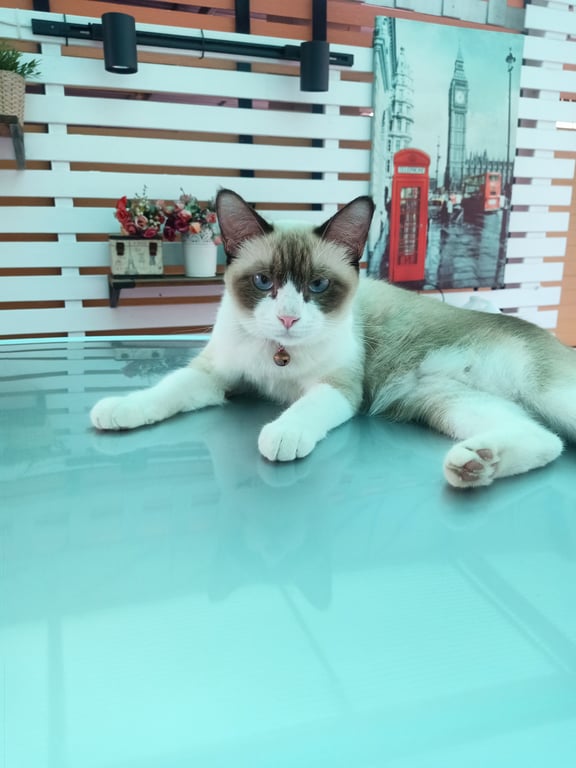 รอยตำหนิ: หน้าออกสีเทาออกน้ำตาลมีกระดิ่งชมพูที่คอ ชองเล่นกับคน ชอบไห้คนอุ้ม ชอบวิ่งเล่นสนาม