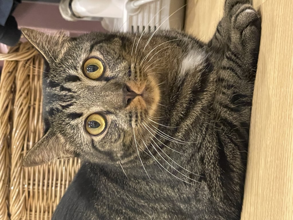 รอยตำหนิ: เท้าหลังมีสีขาว 1 ข้าง ตาทั้งสองข้างมีสีเหลือง ตัวค่อนข้างใหญ่ หนักประมาณ 5-6 กิโลขี้กลัว ขี้ตกใจ
