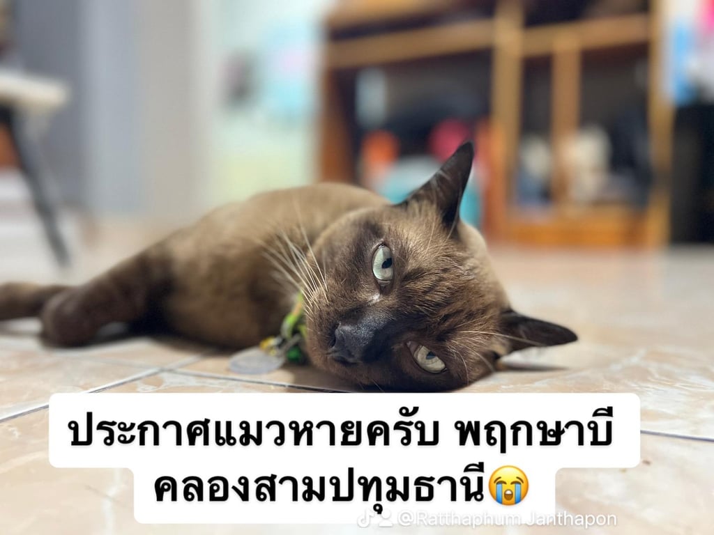รอยตำหนิ: น้ำหนักประมาณ4.2กิโลกรัม มีปลอกคอสีเขียว ที่ปลอกคอมีป้ายชื่อเขียนว่า Money และเบอร์โทร