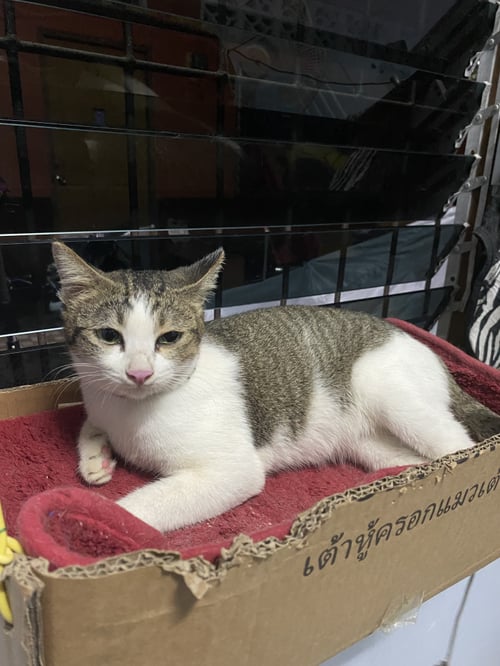 สี: ลายสลิดตามตัวเเละหน้าขาวแขนขาขาว