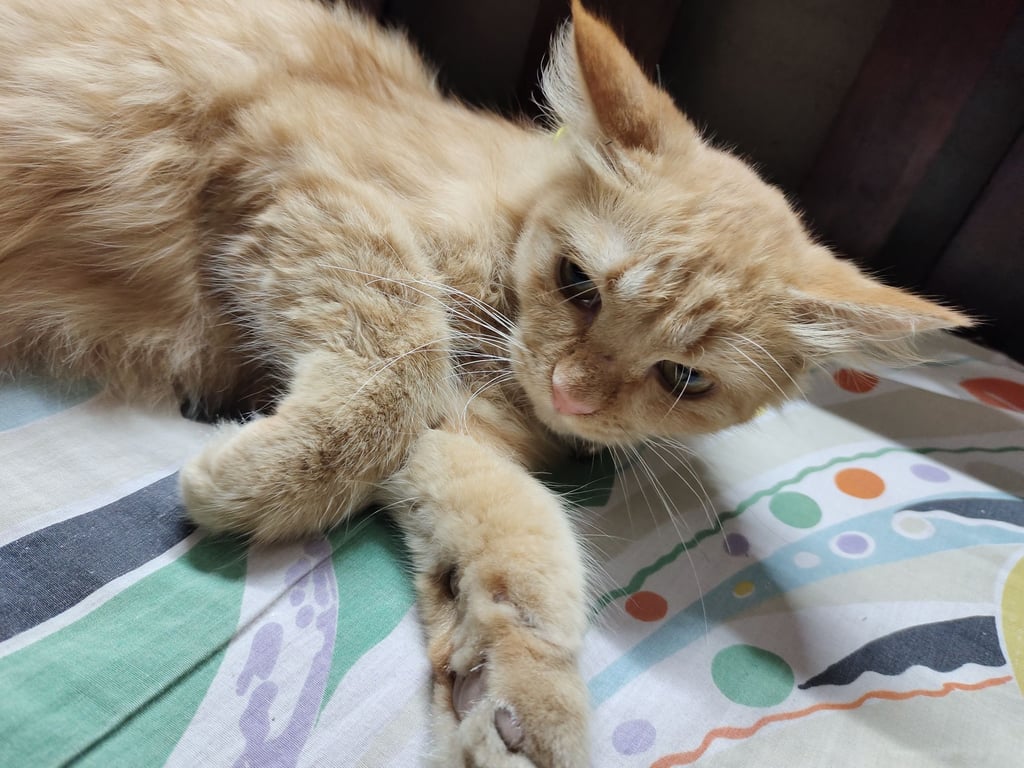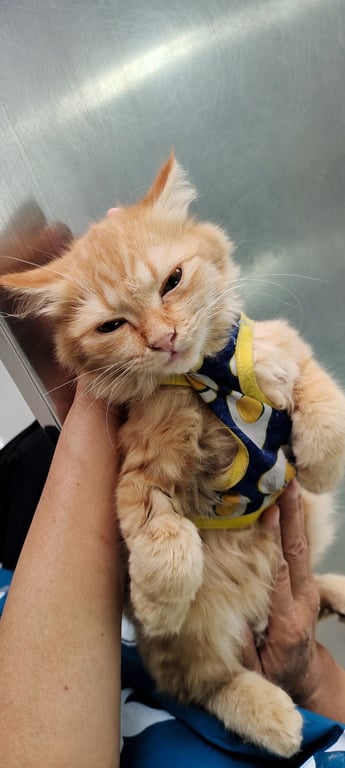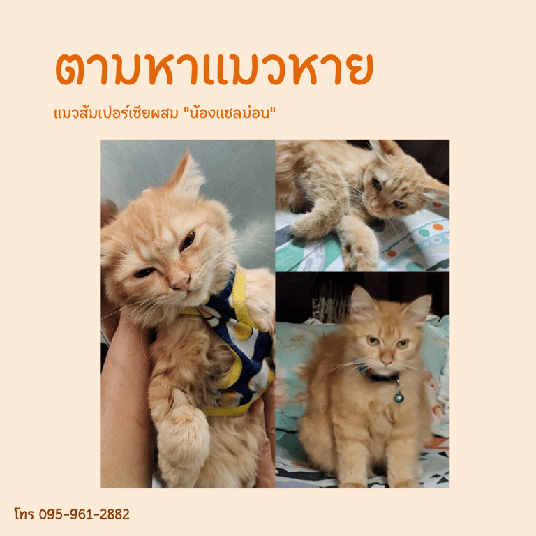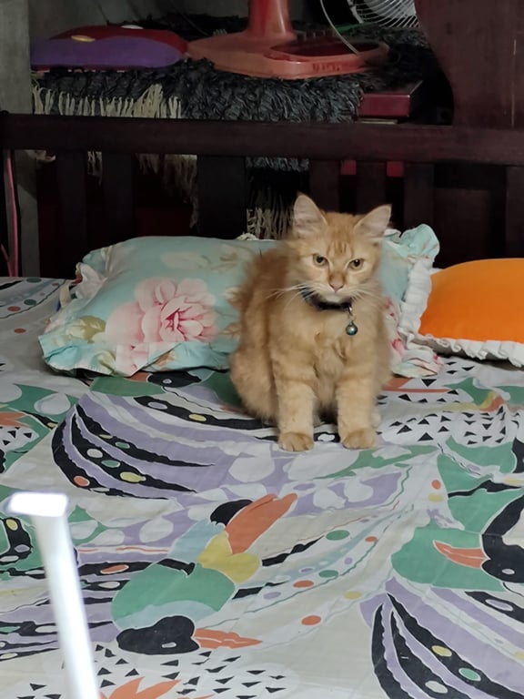 รอยตำหนิ: หางงอ มีรอยแผลสีดำ รักแร้พุงโดนโกนขนเล็กน้อย เป็นเชื้อราแมวขี้อ้อน กินเก่งมาก ๆ แต่จะกลัวเสียงรถ