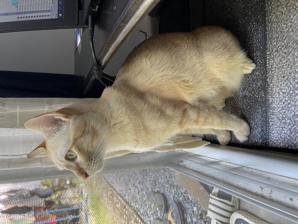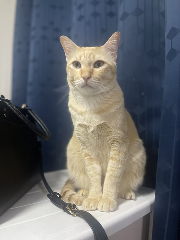 รอยตำหนิ: หางยาวตรง สีส้มอ่อนออกเหลือง ตาสีเหลือง ตัวนิ่มไม่สวมปลอกคอ หนักประมาณ 5-6 กิโลกรัม