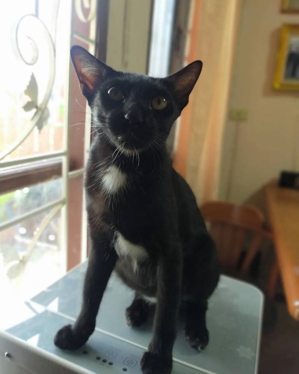 รอยตำหนิ: หูเอียง ขาวขาว ท้องขาว ลำตัวมีขนหงอกแซม1 ปี 5 เดือน