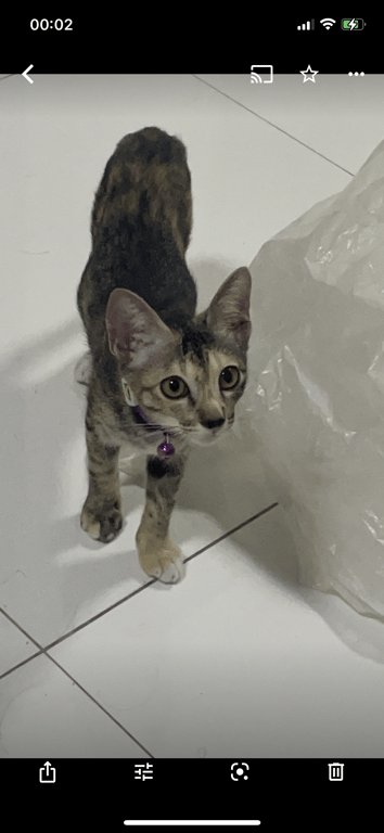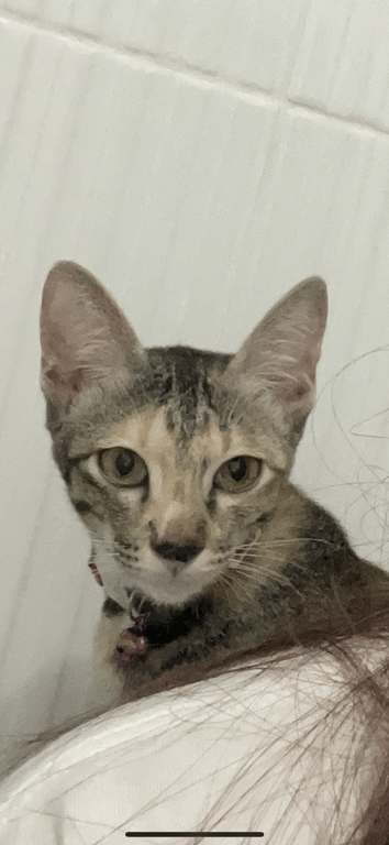 รอยตำหนิ: หูใหญ่ ปอกคอสีม่วง ตัวเล็ก ยาง หางยาวสวย จมูกเป็นดำเปื้อนๆขี้ตกใจ ขี้สงสัย ชอบสำรวจ ร้องโวยวายถ้าโดนขัง อ้อนเฉพาะเวลาหิว